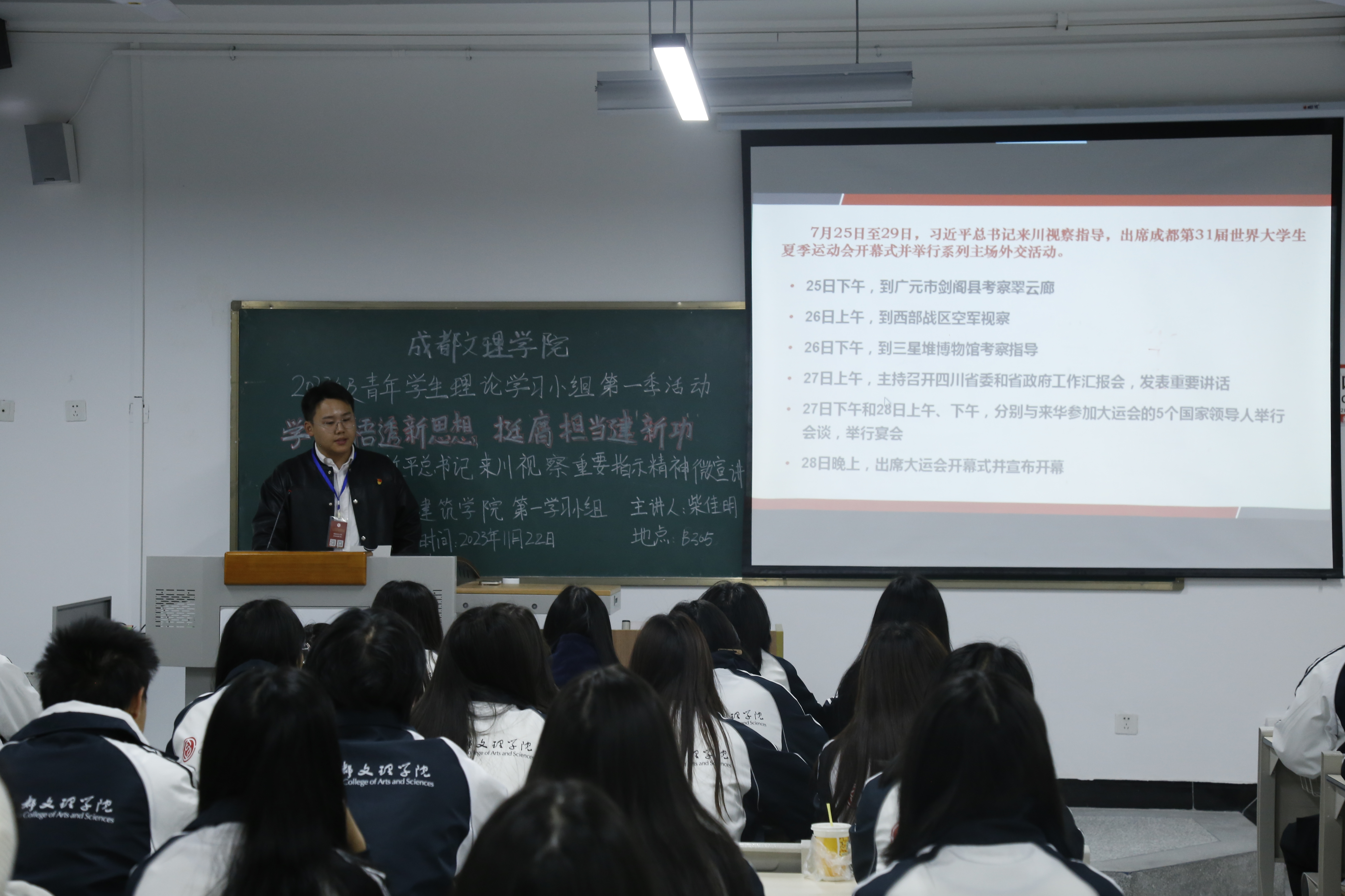 按照公司党委部署,11月22日,公司党员宣讲团面向全体大一新生开展“学习贯彻习近平总书记来川视察重要指示精神”主题宣讲,员工党员廖巍、刘云姝、柴佳明作为主讲人。